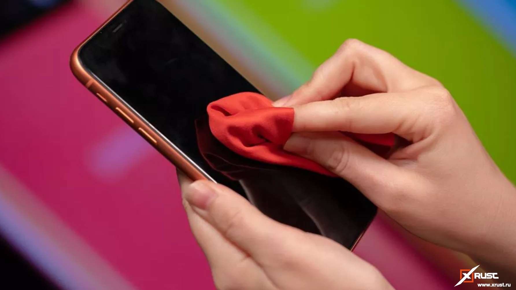 Смартфон. Протирайте мобильное устройство в первую очередь.