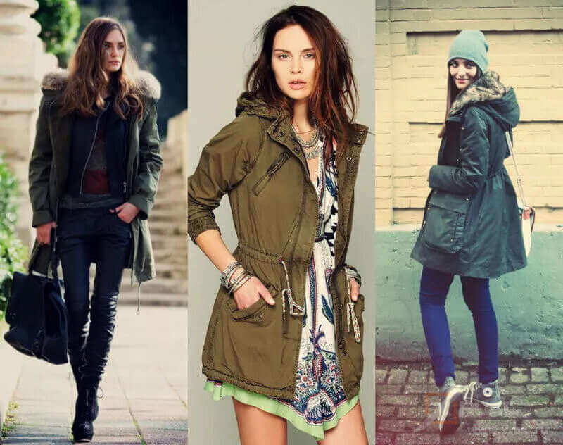 Парка может быть выполнена не только в защитных цветах, но и более ярких, например, в синем. Надев синюю женскую стильную парку, можно рассмотреть такие сочетания: