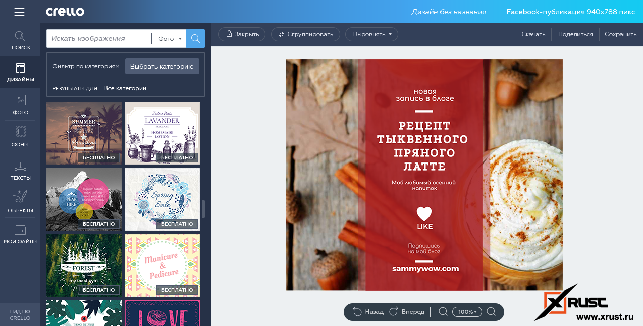 Выбираем тему для паблика FacebookCrello поможет в создании уникального паблика, через сайт crello.com вы можете скачать обложки для фейсбука. На сайте представлено большое количество бесплатных шаблонов, плюс есть визуальный редактор, который поможет уникализировать выбранную вами тему.