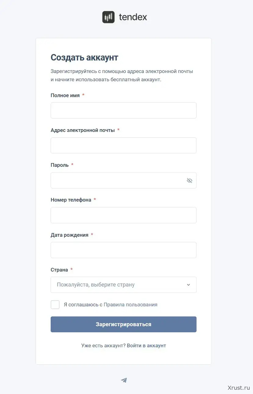 Регистрация проходит по адресу portal.tendex.capital/register. Процесс стандартный для лицензированной платформы — занимает около 5 минут.