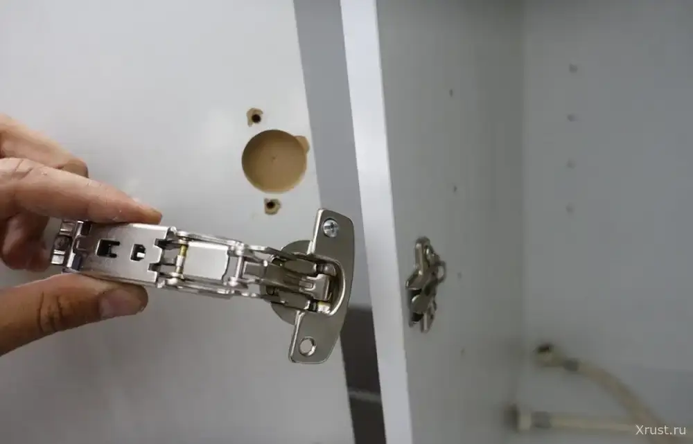 Ремонт кухонных шкафов – частая проблема. Из строя обычно выходят навесы – это элемент, обеспечивающий открывание/закрывание дверцы, поясняет xrust. Если он просто развалился, то замена выполняется элементарно.
