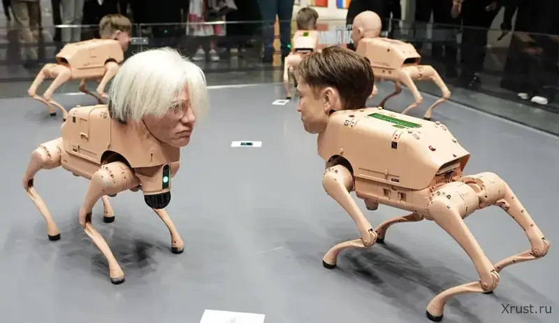 Xrust: Роботы собаки с головами Илона Маска, Энди Уорхола и Джеффа Безоса ошарашили посетителей выставки